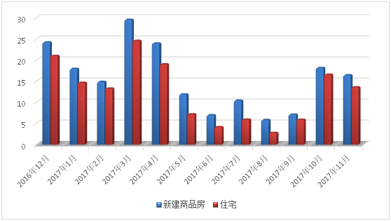 2016年12月—2017年11月新建商品房和住宅成交面积对比图